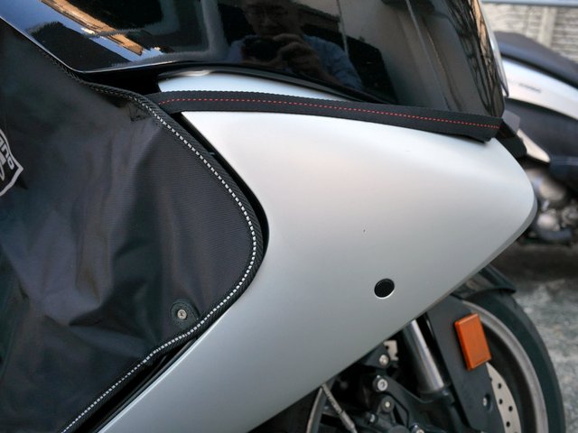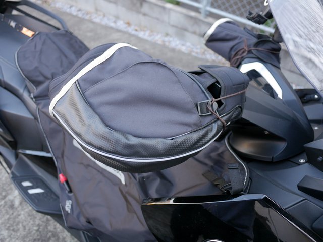実際に取り付けてみると、冬場に足元へ風が入り込まないだけで、快適性が格段に向上することを実感した。とりわけ高速走行時に足が吹きさらしにならないと、これほど冬の走行が楽になるのかと驚いた。BMW C650GTにはシートヒーターがあるので、このカバーで下半身を覆うと腰より下の保温効果が格段に上がり、寒さがかなり和らぐ。