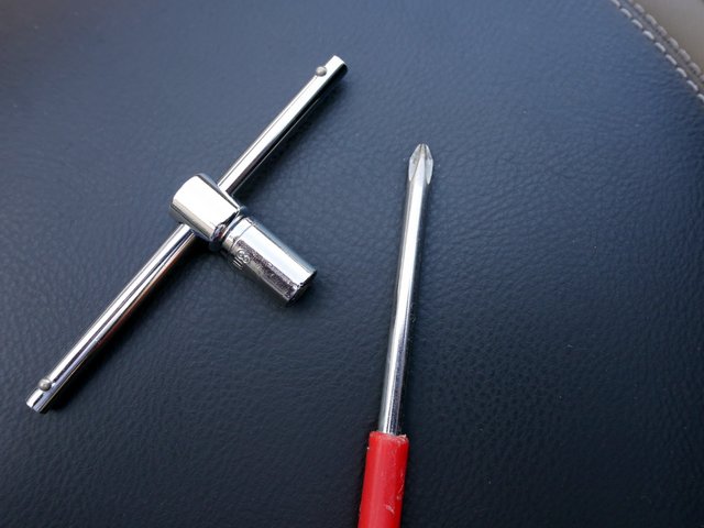 プラスドライバーと8mm ボックスレンチ